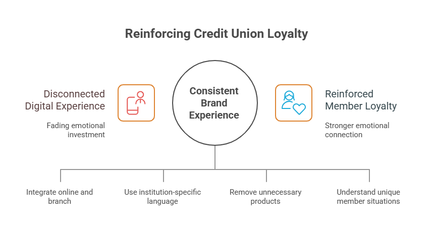 Loyalty isn’t maintained through feature parity. Big banks will always have bigger budgets for features. Loyalty is maintained through consistency between what the member believes about the institution and what they experience every time they interact with it. If your credit union’s brand promise is “We know you by name,” but members feel like account numbers in your digital experience, that’s friction.