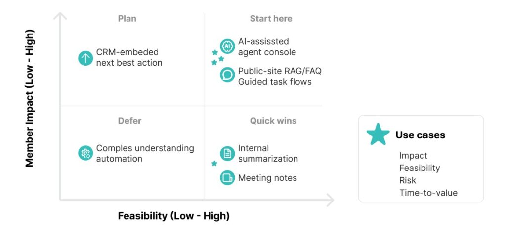 Start where value is clear and risk is manageable. In our work with credit unions, three categories consistently stand out: